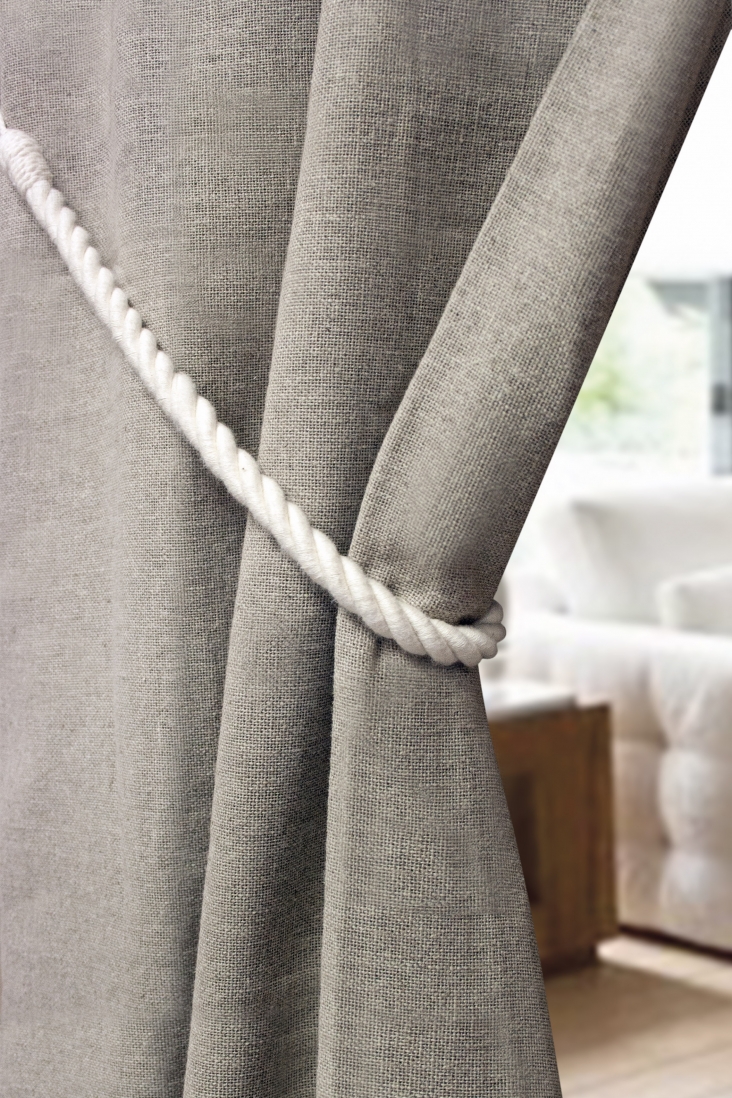 Uniwersalna bawełniana obejma - sznur z tradycyjnym splotem o średnicy 12mm. Do podpięcia lekkich zasłon lub firan.