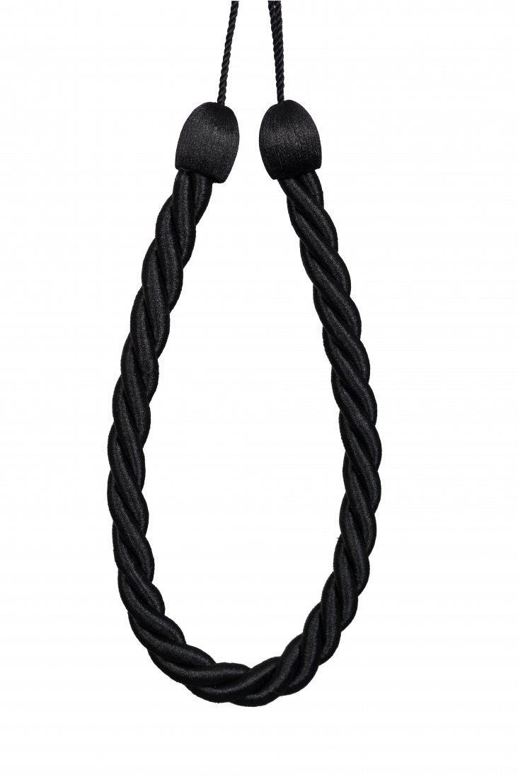 Średniej wielkości, uniwersalna obejma o średnicy 2cm i długości sznura 78cm. Z dwóch stron zakończona sztywną główką. Do podpięcia zasłony lub firany w nowoczesnym lub klasycznym wnętrzu.