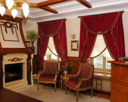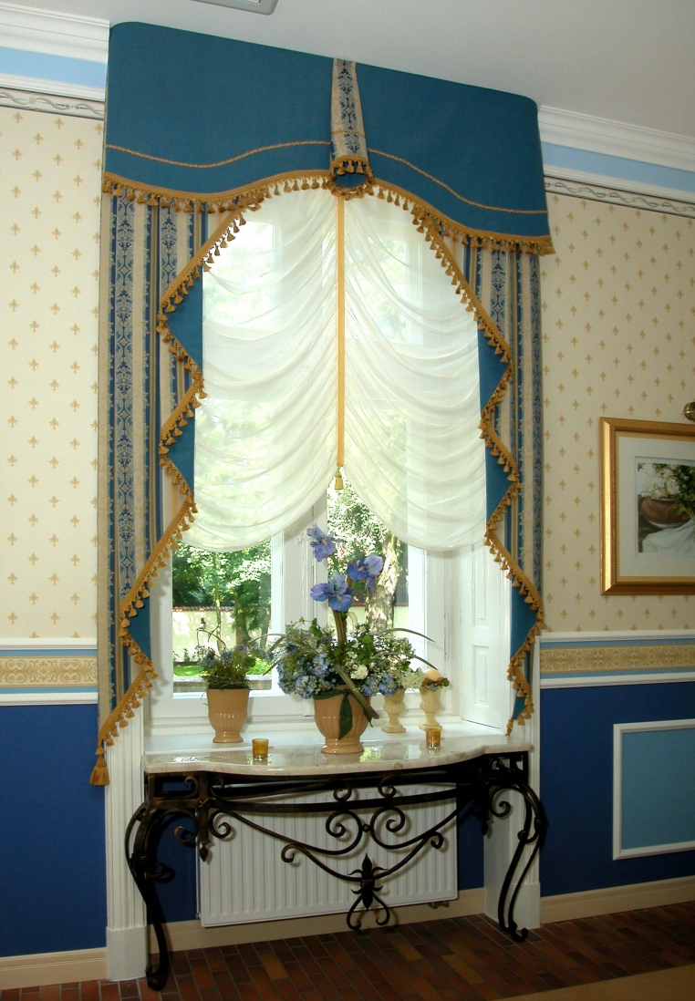 Nieodzowne są także dekoracyjne zasłony ozdobione pasmanterią i chwostami, obrusy, serwety, poduszki.