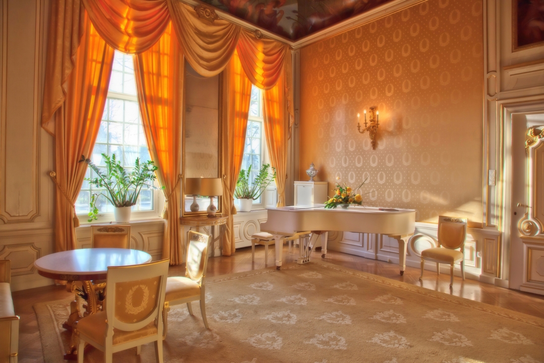 To przepych luksus i blask. Eleganckie, szykowne dodatki nadają wnętrzu luksusowego klimatu i efektownego blichtru. Ważna jest symetria- parzysta liczba sprzętów, dodatków i dekoracji.