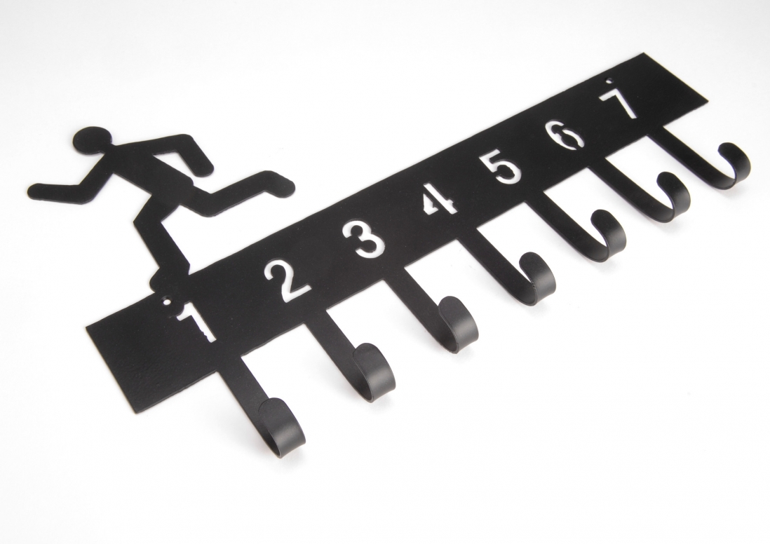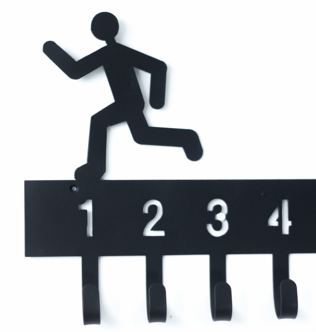 Nowoczesny wieszak do każdego wnętrza w stylu nowoczesnym lub do loftu z ikoną przedstawiającą biegnącą postać.