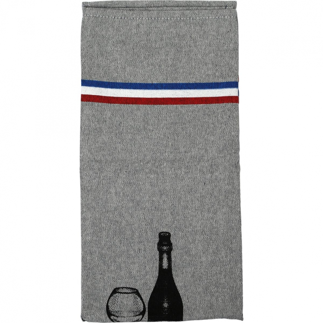 Ściereczka kuchenna wykonana z wysoko gatunkowej miękkiej bawełny  w szarej tonacji z oryginalnym nadrukiem  oraz kolorowym paskiem, nawiązującym do flagi francuskiej.