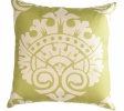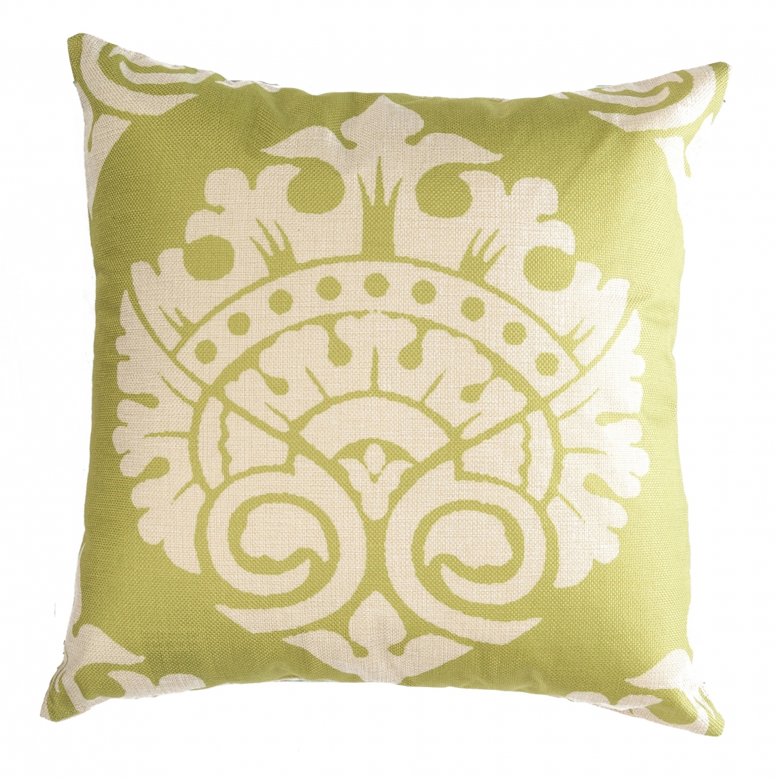 Nowoczesna poduszka z oryginalnym, graficznym nadrukiem w kolorze limonki.