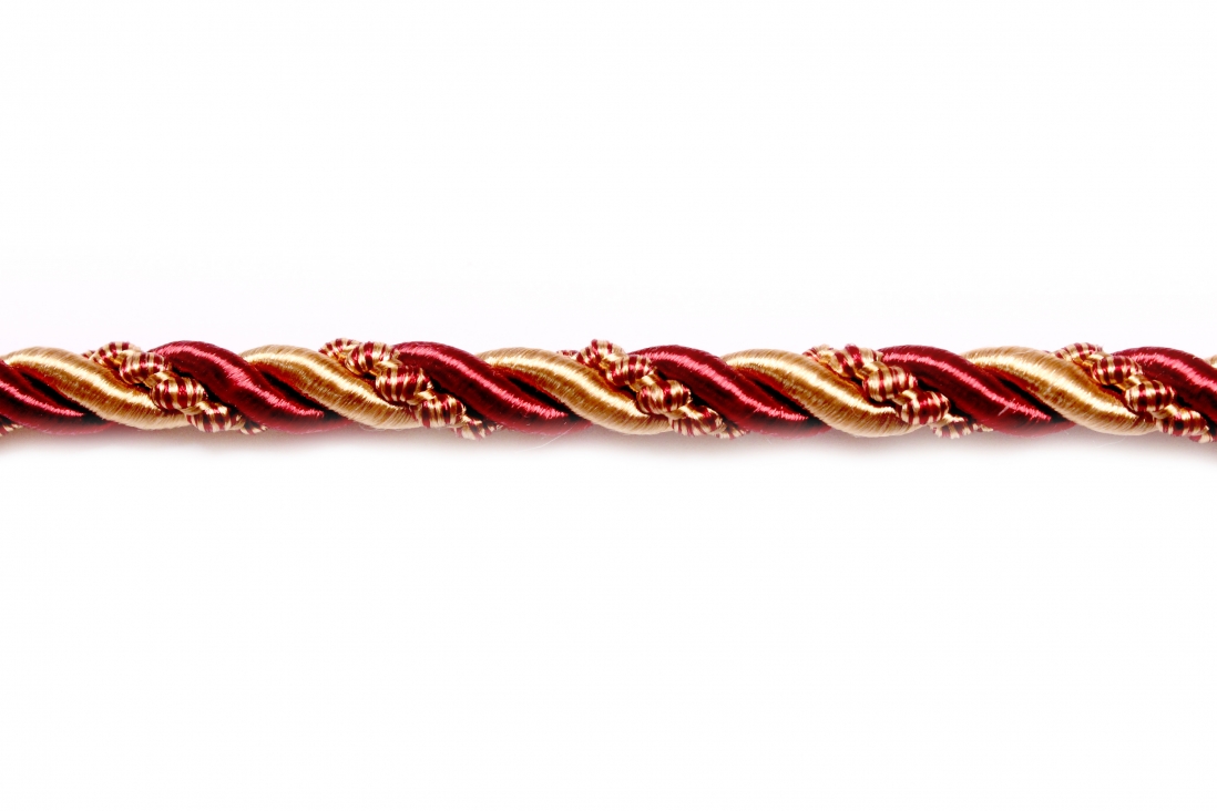 Sznurek o oryginalnym, dekoracyjnym splocie. Uniwersalne zastosowanie do dekoracji wnętrz i do celów tapicerskich.